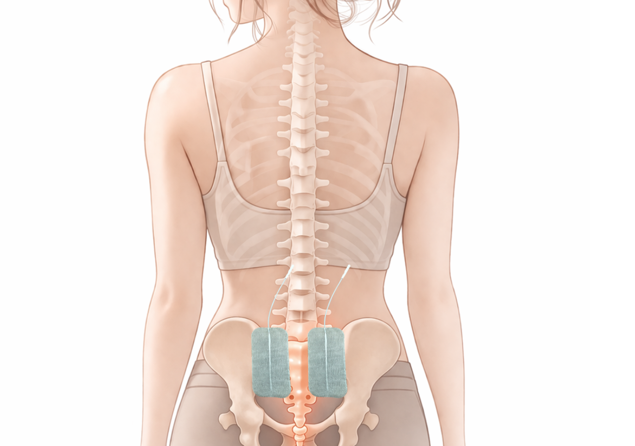 痛みのない特殊電気刺激で仙骨(骨盤・子宮まわり)の血流量と筋肉、関節を同時に緩めます。