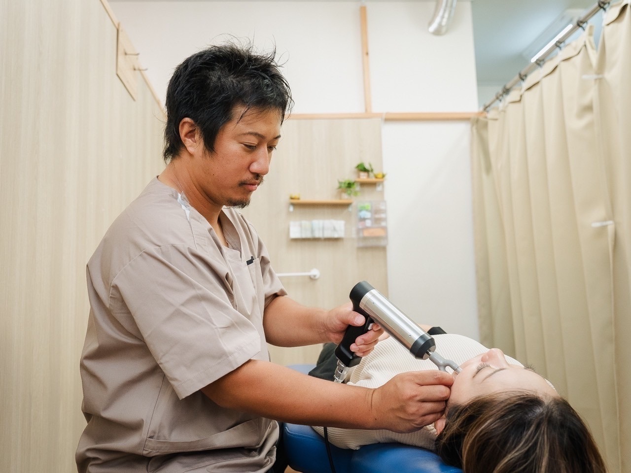 三叉神経に左右6箇所の振動刺激をします。痛みもなく安心して施術ができます。