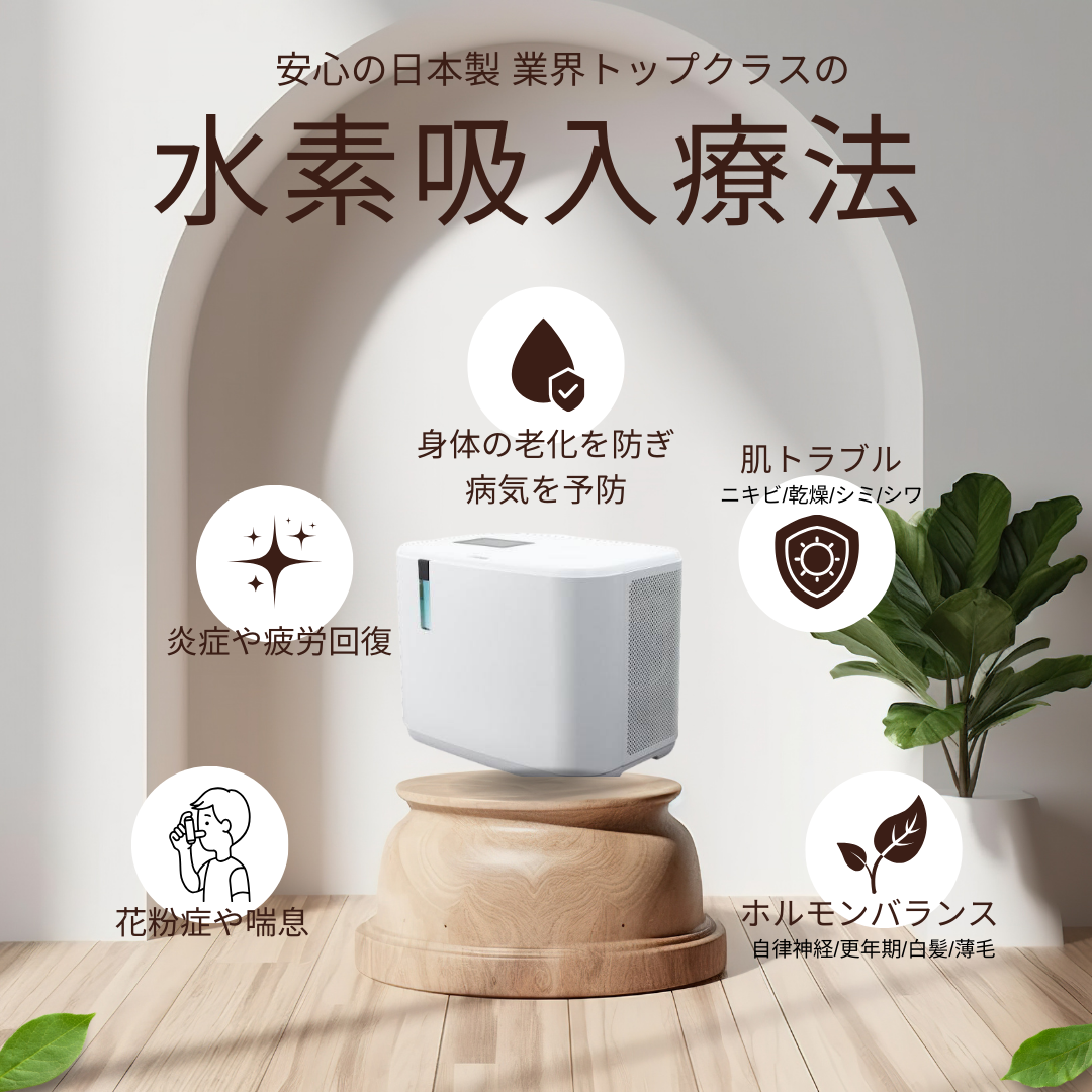 水素吸入療法は2006年から研究を重ね、2016年に先進医療で用いられるようになりました。当院の水素吸入は【コアップSAー2600】を使用し水素ガス発生装置の中でも業界でトップクラスを誇る機械を使用しております。1分間吸入すると約86ℓ分の水素水(1ℓに水素が20ml溶け込んでいる)と同等の水素を吸入することができます。