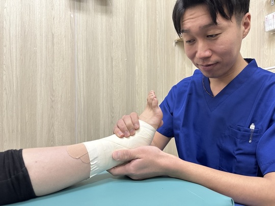 テーピングや包帯などを使用し靱帯や軟部組織の安定性を保つことで、症状の早期回復を目指します。