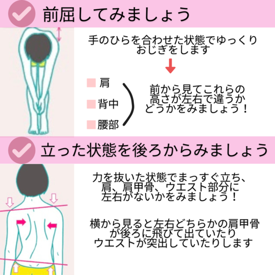 側湾症は早期に発見すれば比較的簡単な方法で改善が可能です。背骨が歪んでしまうと身体の痛みや痺れはもちろん、ホルモンバランスも崩れてしまいます。